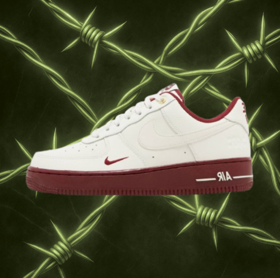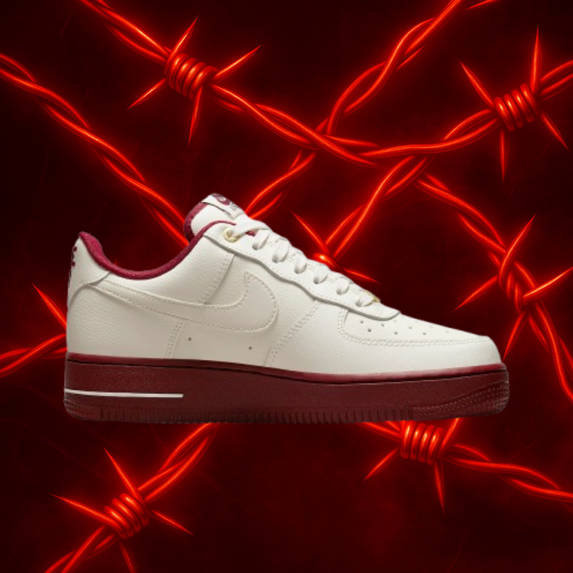 Dressed in a two-toned colourway, the Nike Air Force 1 Low 40th Anniversary White Burgundy celebrates the basketball model that was first released in 1982. The leather upper is decorated with Swoosh detailing, Nike lettering and gold accents. Underfoot, the Air midsole offers comfort and the rubber outsole provides effective grip. Padding in the collar adds extra cushioning and the perforated toe box allows for ventilation. Find your size with DXBPLUG.