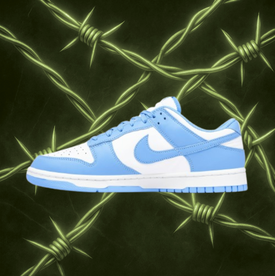 Whenever the UNC colourway graces a pair of sneakers, the entire community takes notice. The colourway made famous thanks to Michael Jordan's college allegiance, the Nike Dunk Low University Blue is one of the best drops we have seen this year. White leather underlays are complimented perfectly by that crisp UNC blue honouring the University of North Carolina. The legendary Nike Swoosh also features in the legendary blue hue, whilst you will find Nike branding contrasting in white on the heel tabs. A perforated toe box and padded ankle complete the Nike Dunk University Blue shoes upper design. Underfoot, a sole unit composed of a white midsole and UNC blue outsole finish this silhouette's look. Nike Air technology can be found in the sole unit, guaranteeing unbeatable comfort whether you use the Nike Dunk Low UNC sneaker to skate or not.